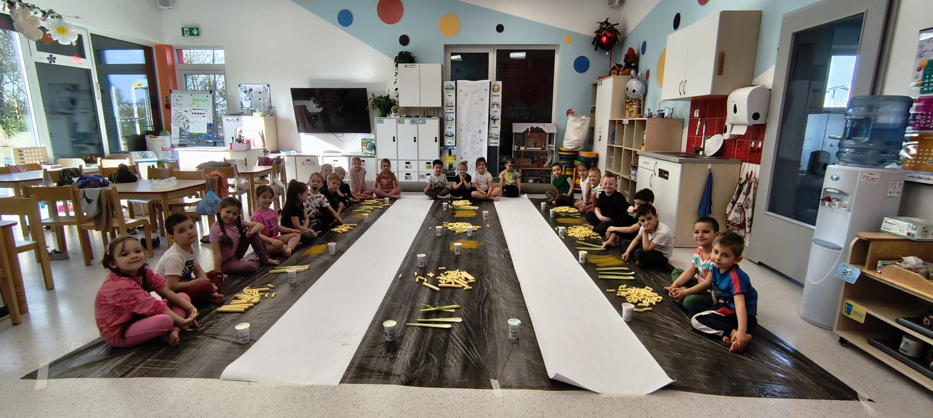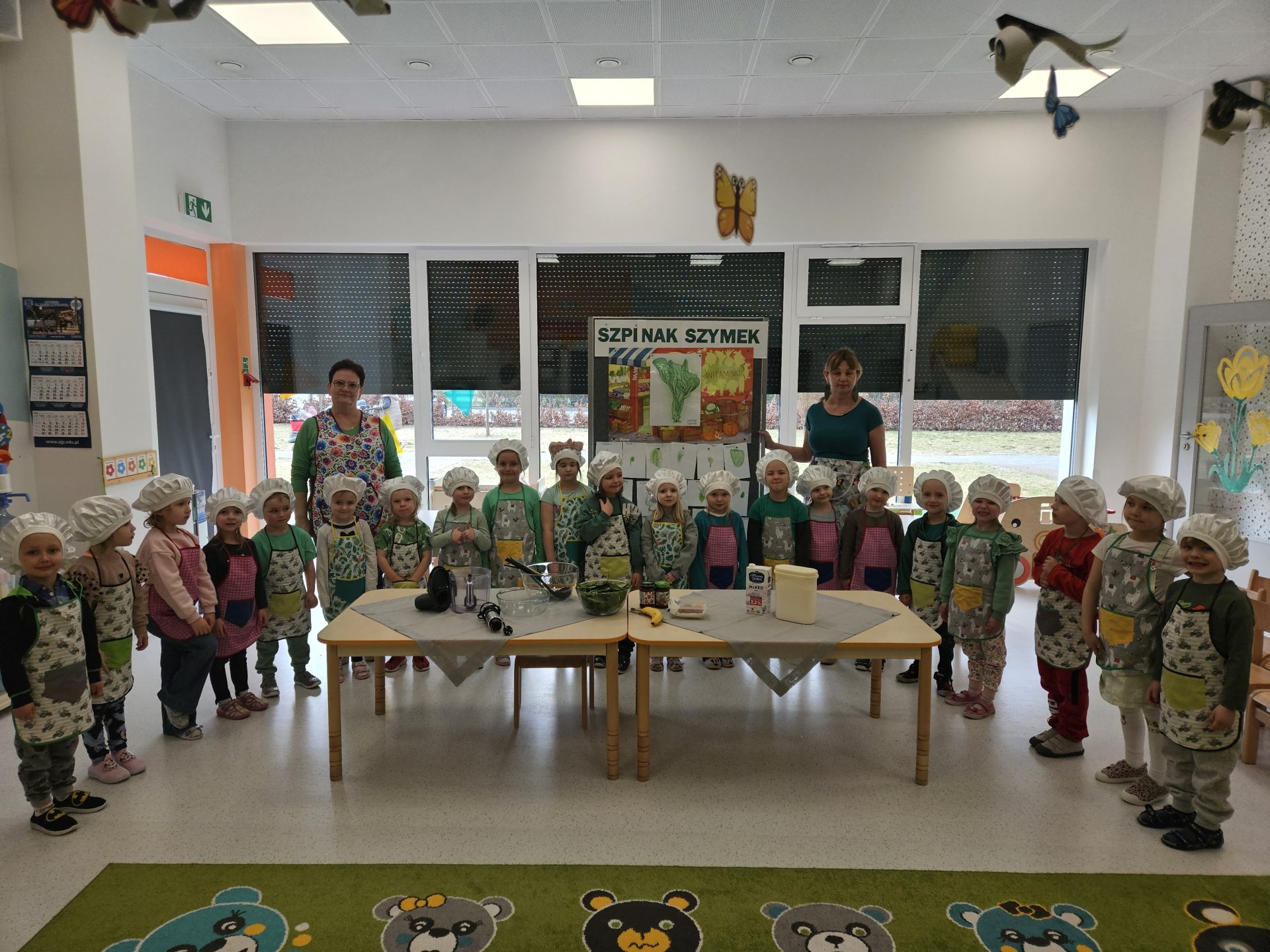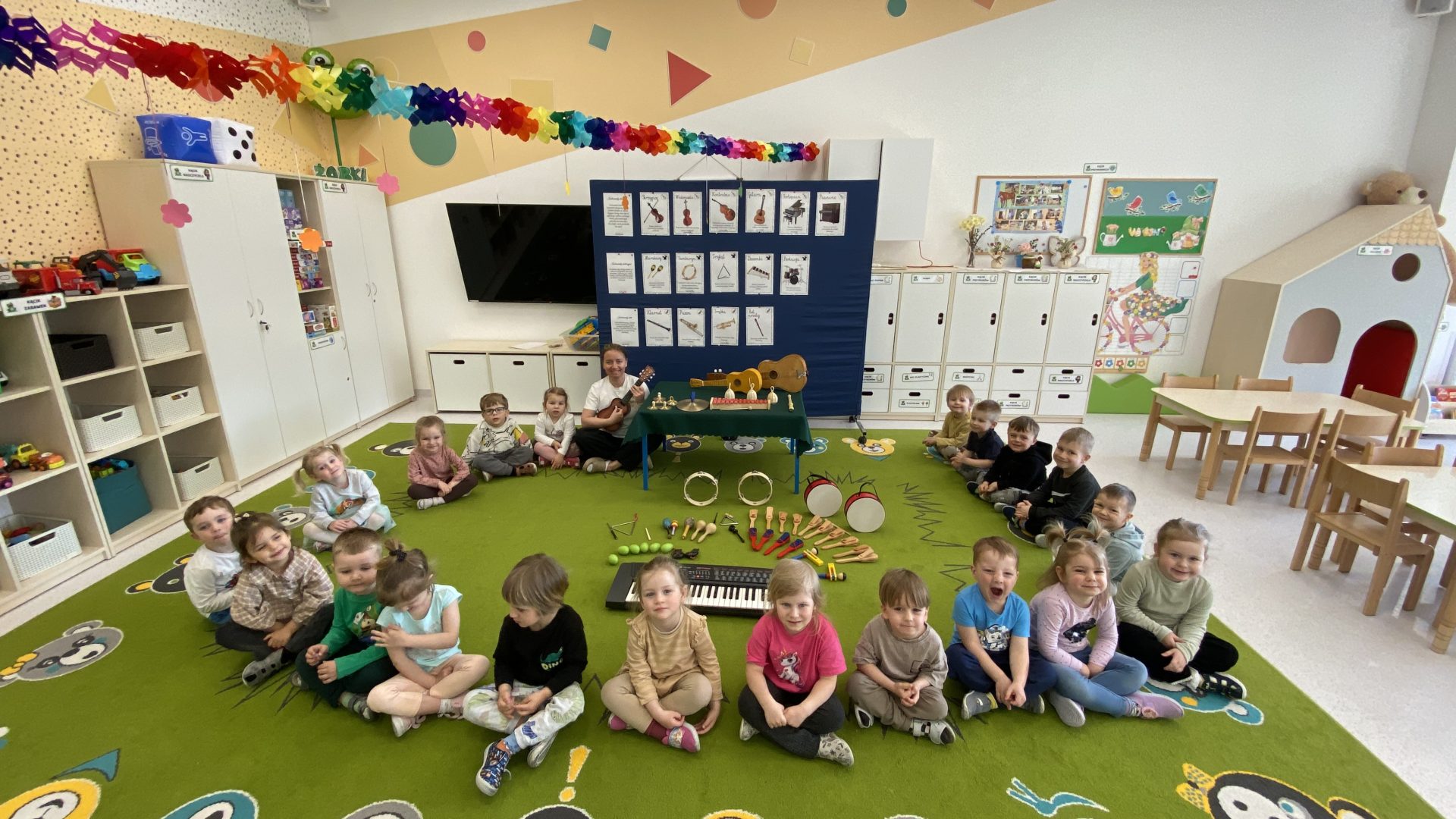 Każda sala dydaktyczna posiada swój indywidualny charakter, jednak widoczne są również cechy wspólne, takie jak podział przestrzeni na strefę zabawy na podłodze oraz nauki przy stolikach.