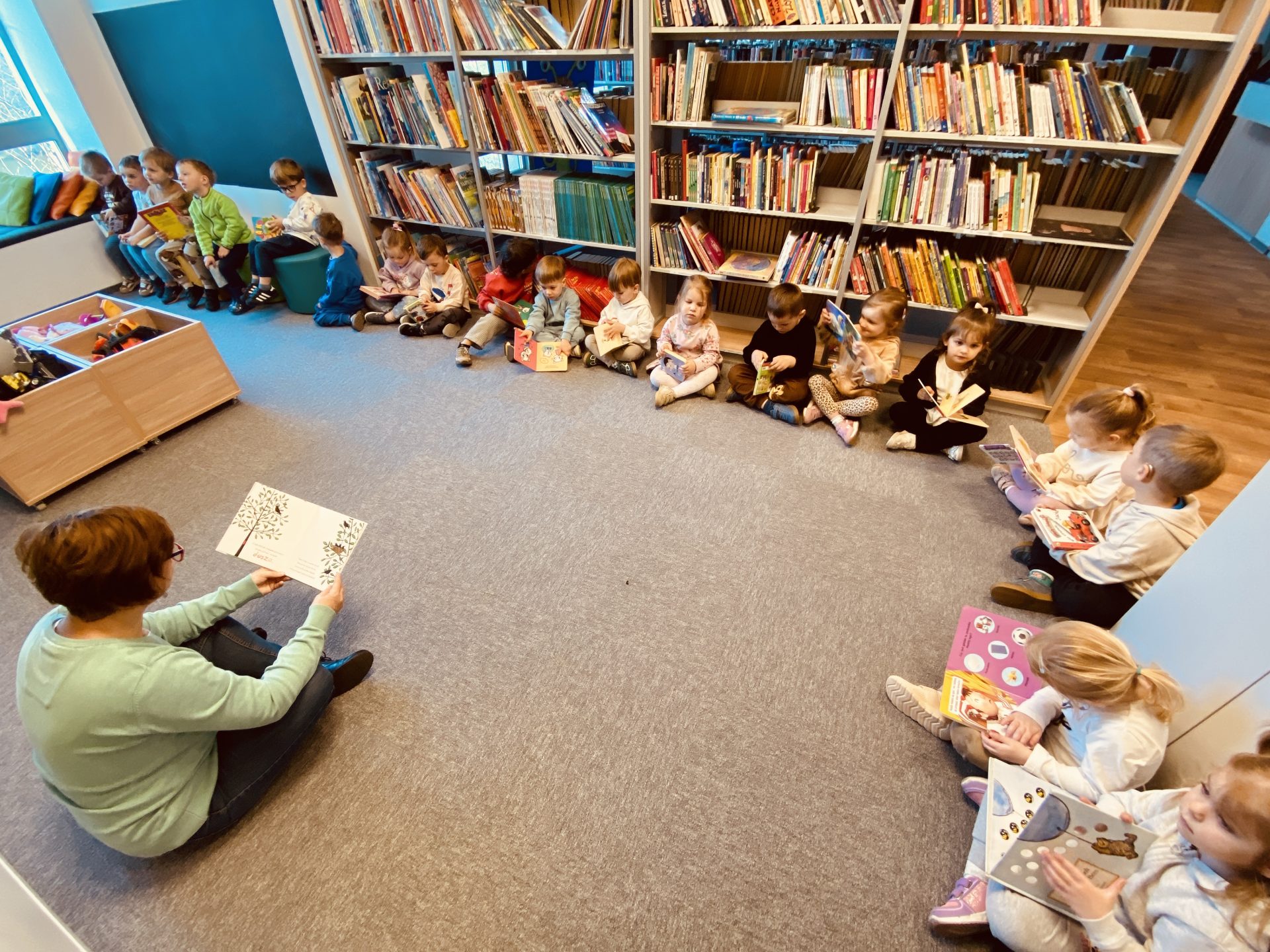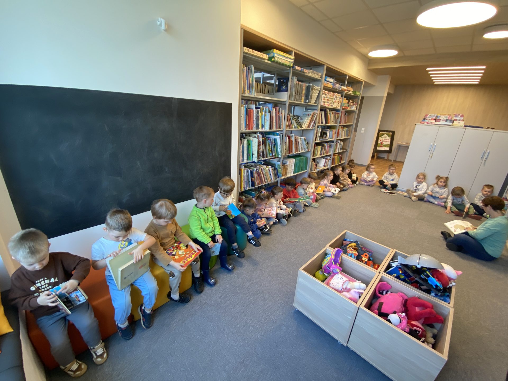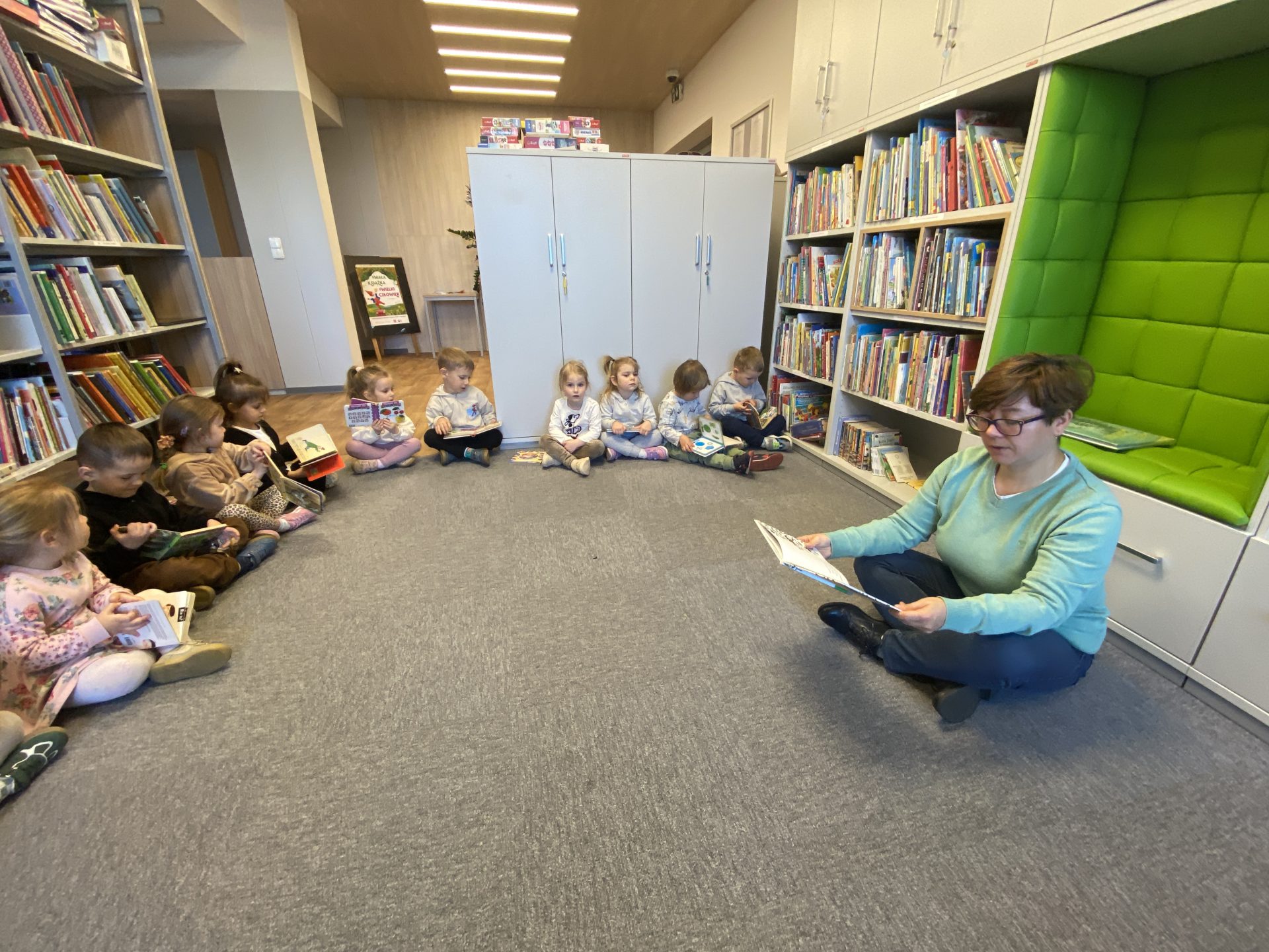 Pani z biblioteki przeczytała dzieciom bajkę, której mali słuchacze wysłuchali z wielkim skupieniem i zaciekawieniem 📖✨