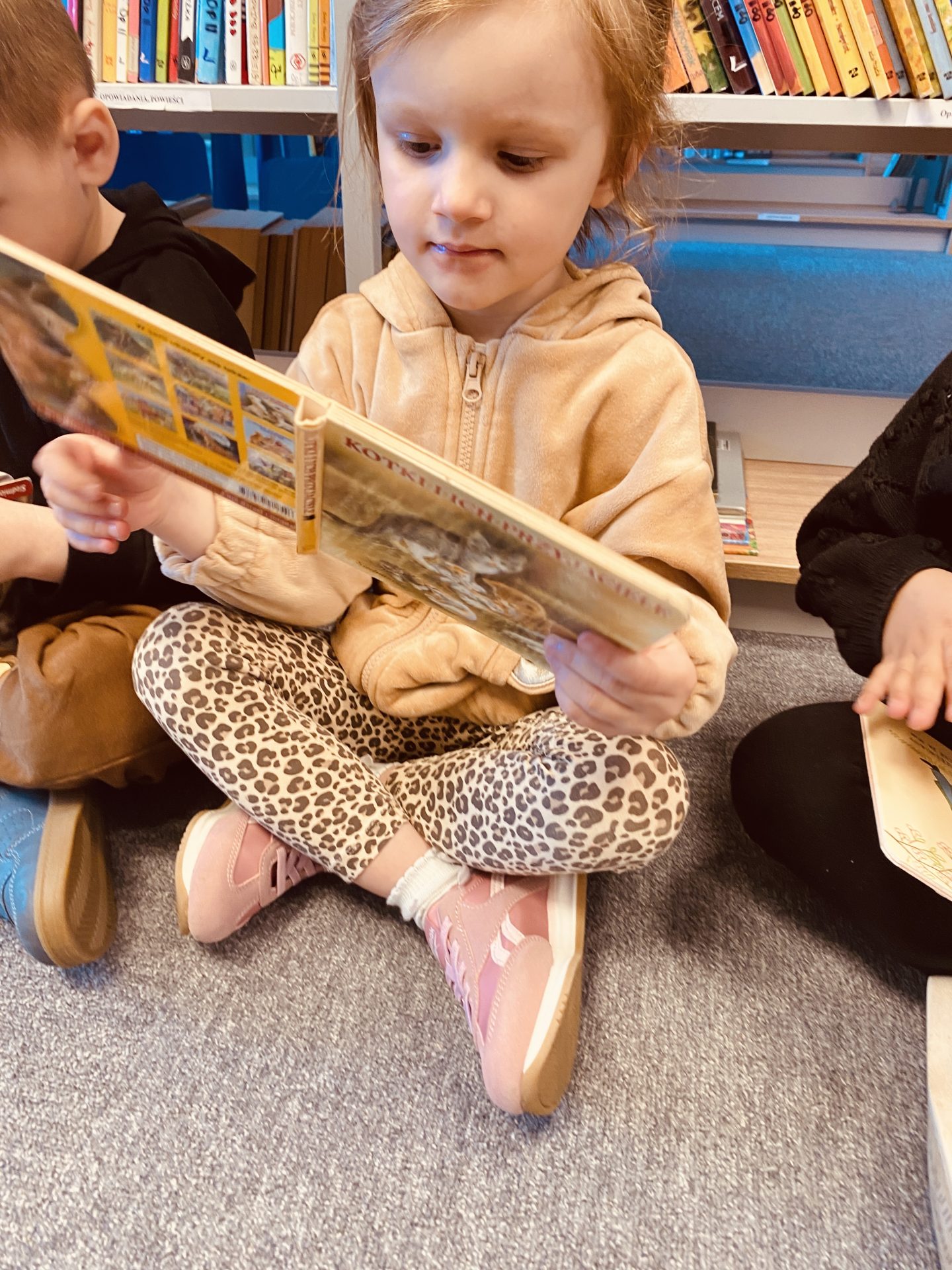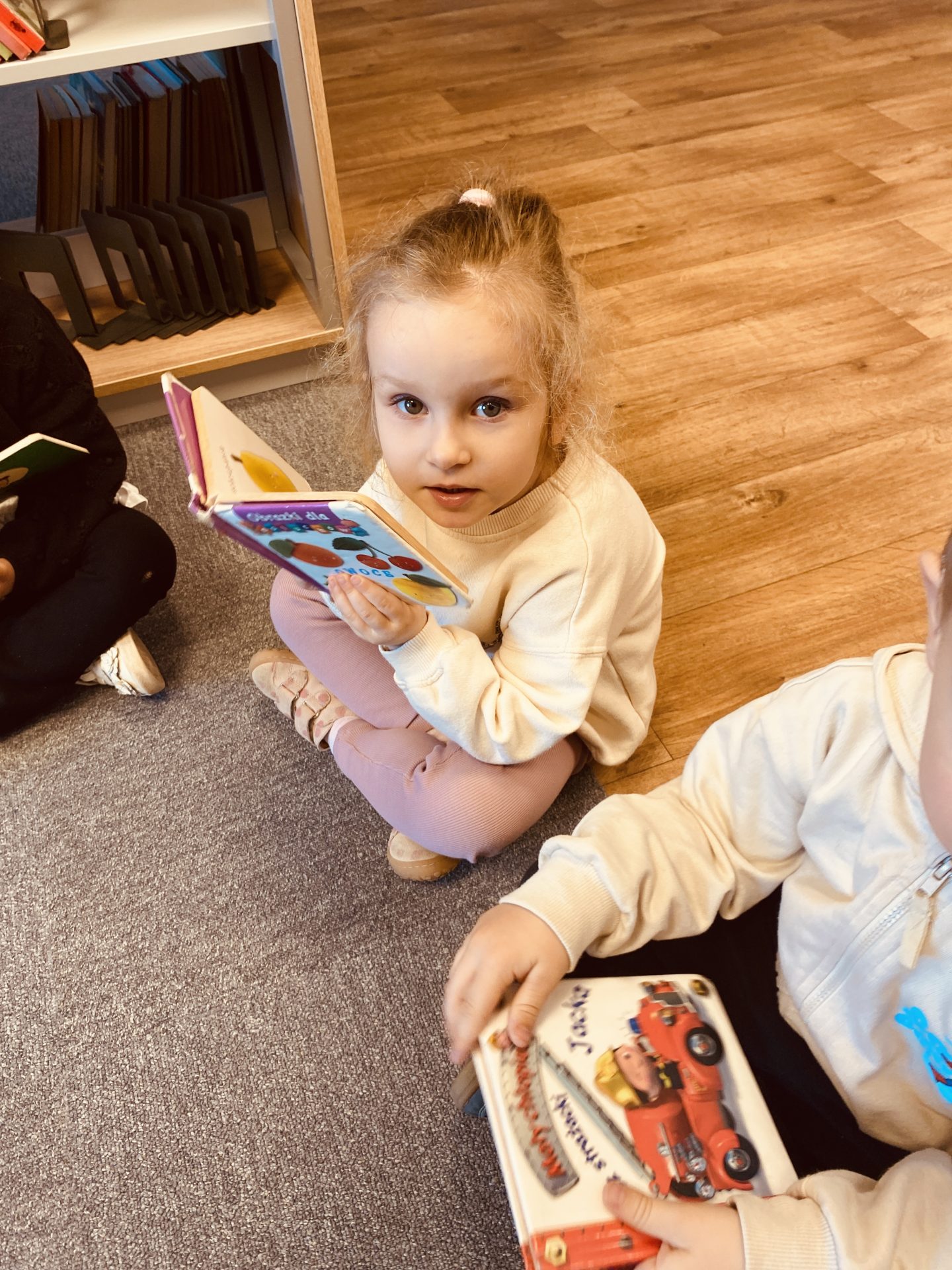 Dzieci z ogromnym zainteresowaniem oglądały kolorowe książeczki, poznawały zasady korzystania z biblioteki oraz dowiedziały się, jak należy dbać o książki. Miały także okazję samodzielnie wybrać książki i wspólnie je przeglądać.