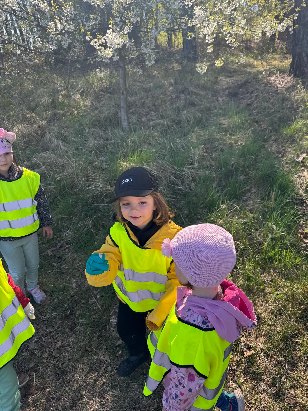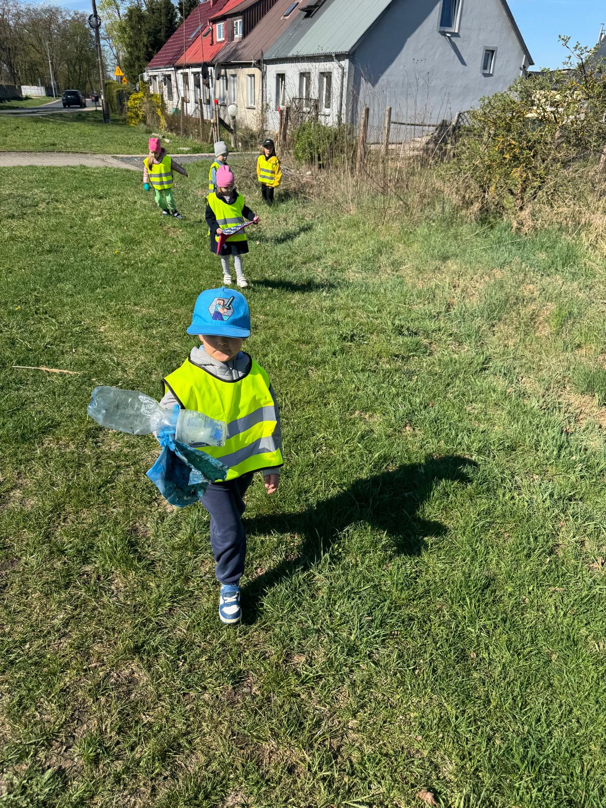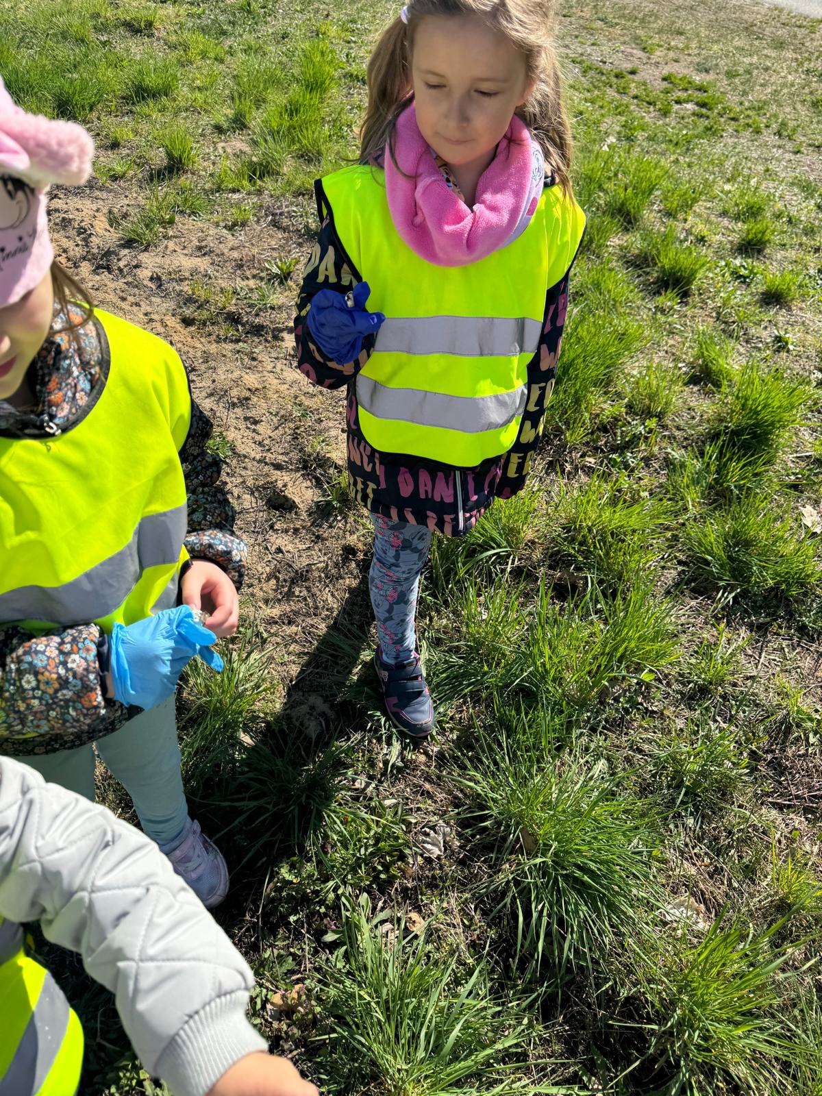 Rozmowy o ochronie przyrody szybko przerodziły się w działanie. „Jeżki” wybrały się na spacer w okolicy przedszkola, aby zadbać o najbliższe otoczenie i posprzątać napotkane śmieci. Dzieci z dużym zaangażowaniem uczestniczyły w akcji, pokazując, że nawet najmłodsi mogą mieć realny wpływ na stan środowiska.