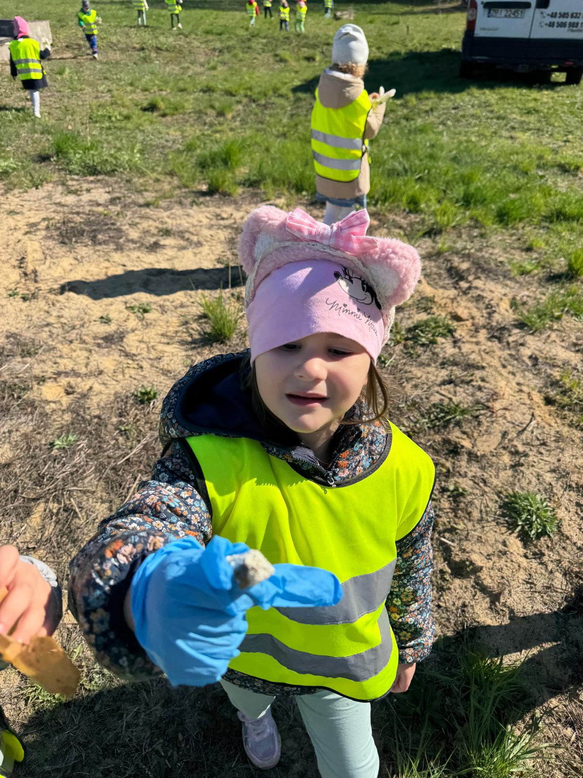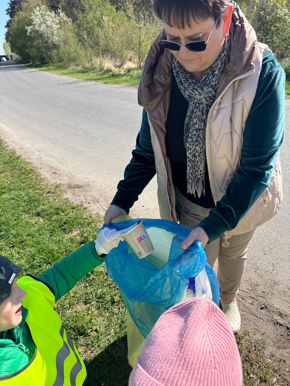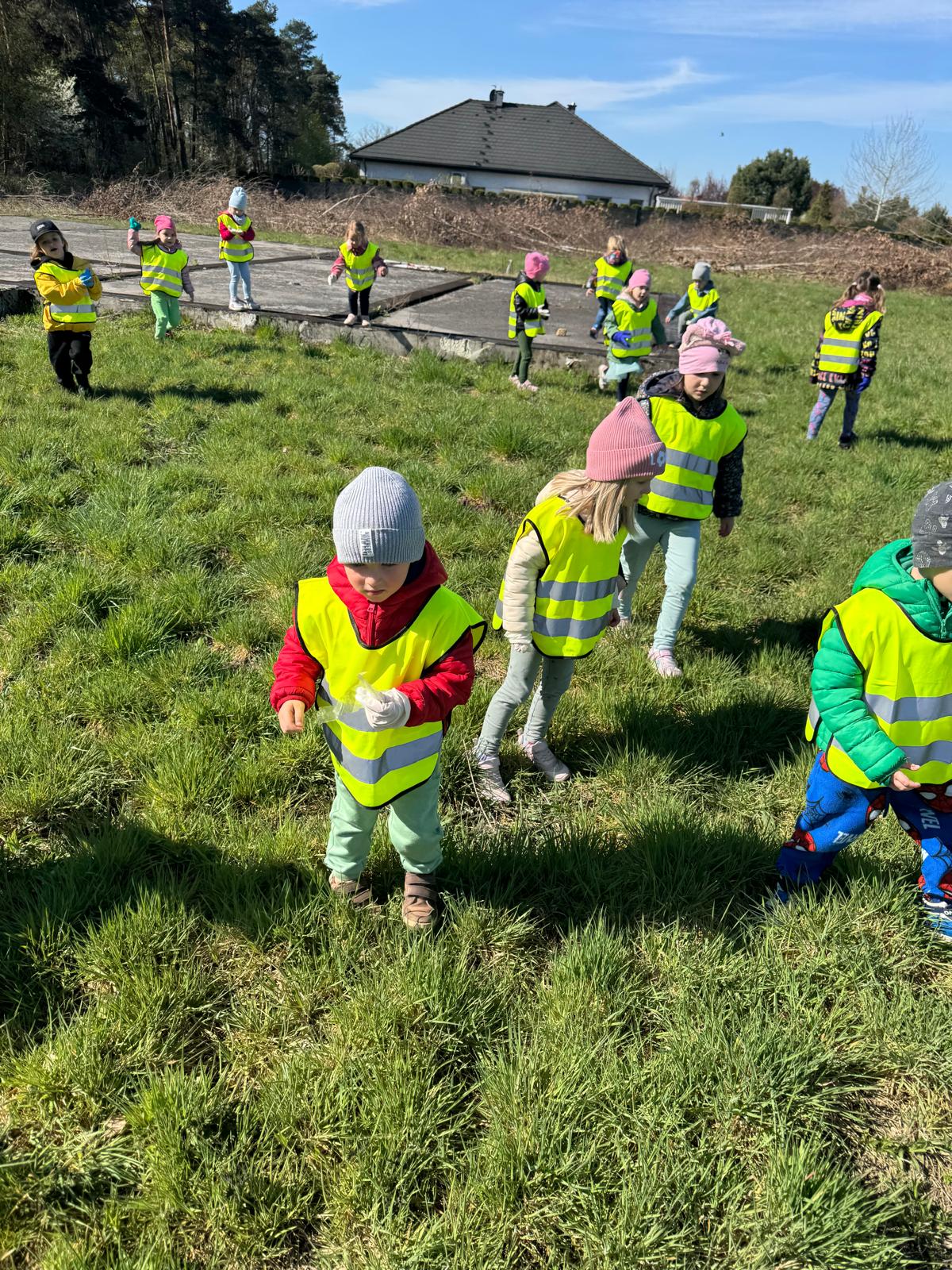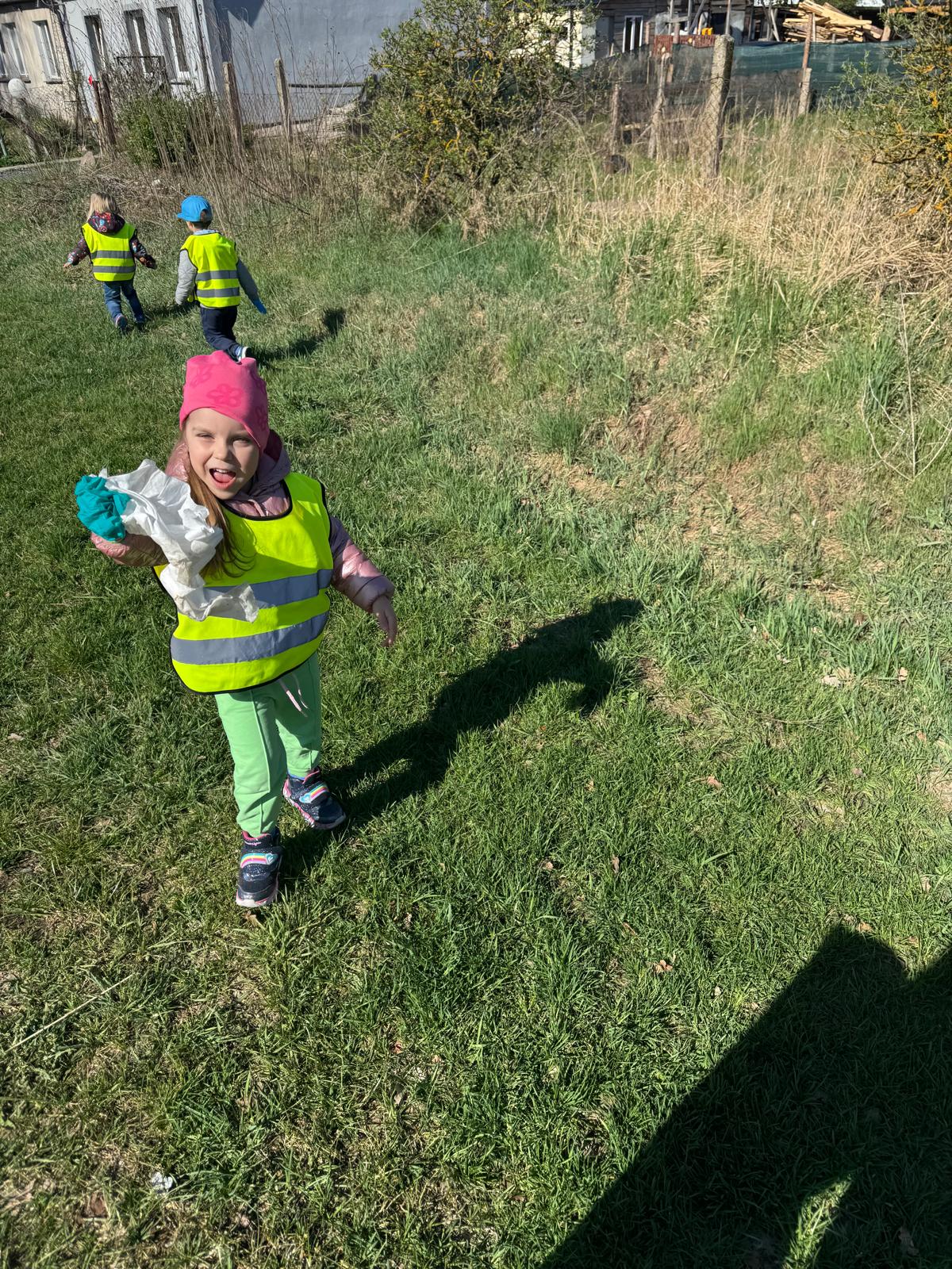 Rozmowy o ochronie przyrody szybko przerodziły się w działanie. „Jeżki” wybrały się na spacer w okolicy przedszkola, aby zadbać o najbliższe otoczenie i posprzątać napotkane śmieci. Dzieci z dużym zaangażowaniem uczestniczyły w akcji, pokazując, że nawet najmłodsi mogą mieć realny wpływ na stan środowiska.
